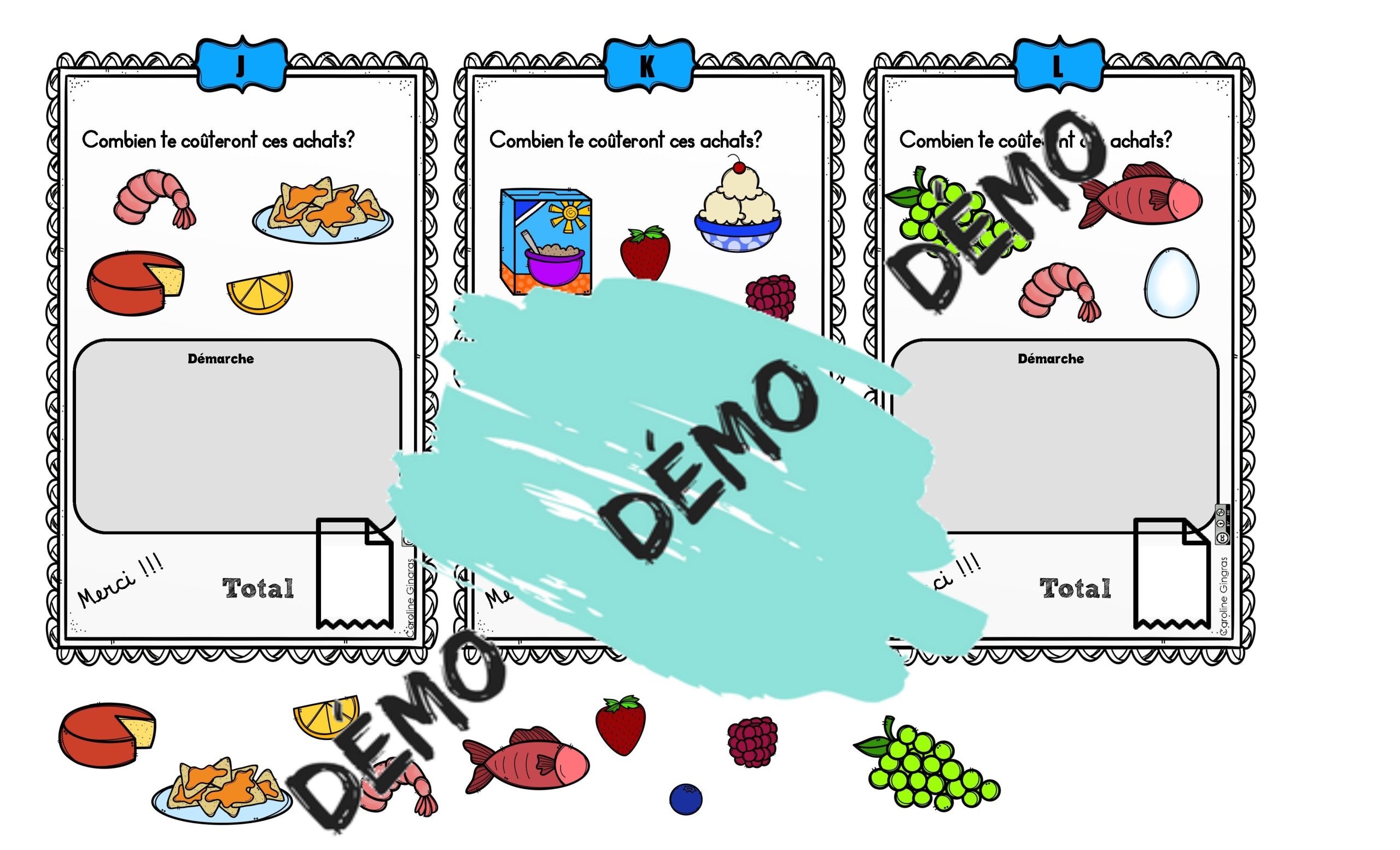 Voici un atelier où l’élève doit additionner les aliments qui se trouvent sur des factures fictives. Il y a aussi 2 versions de la circulaire. Une avec des montants plus petits et l’autre avec des montants plus élevés.