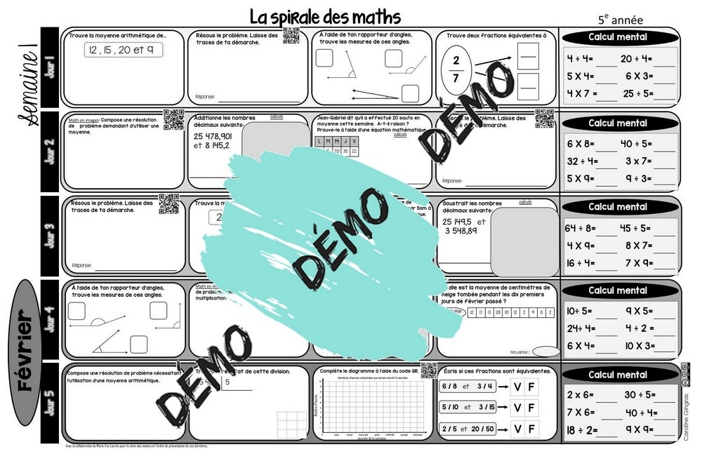 Voici le sixième mois de la spirale des maths pour les élèves de 5e année.