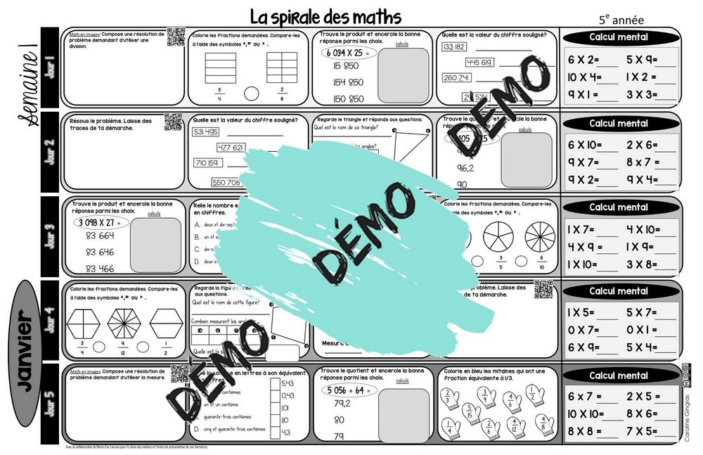 Voici le cinquième mois de la spirale des maths pour les élèves de 5e année.